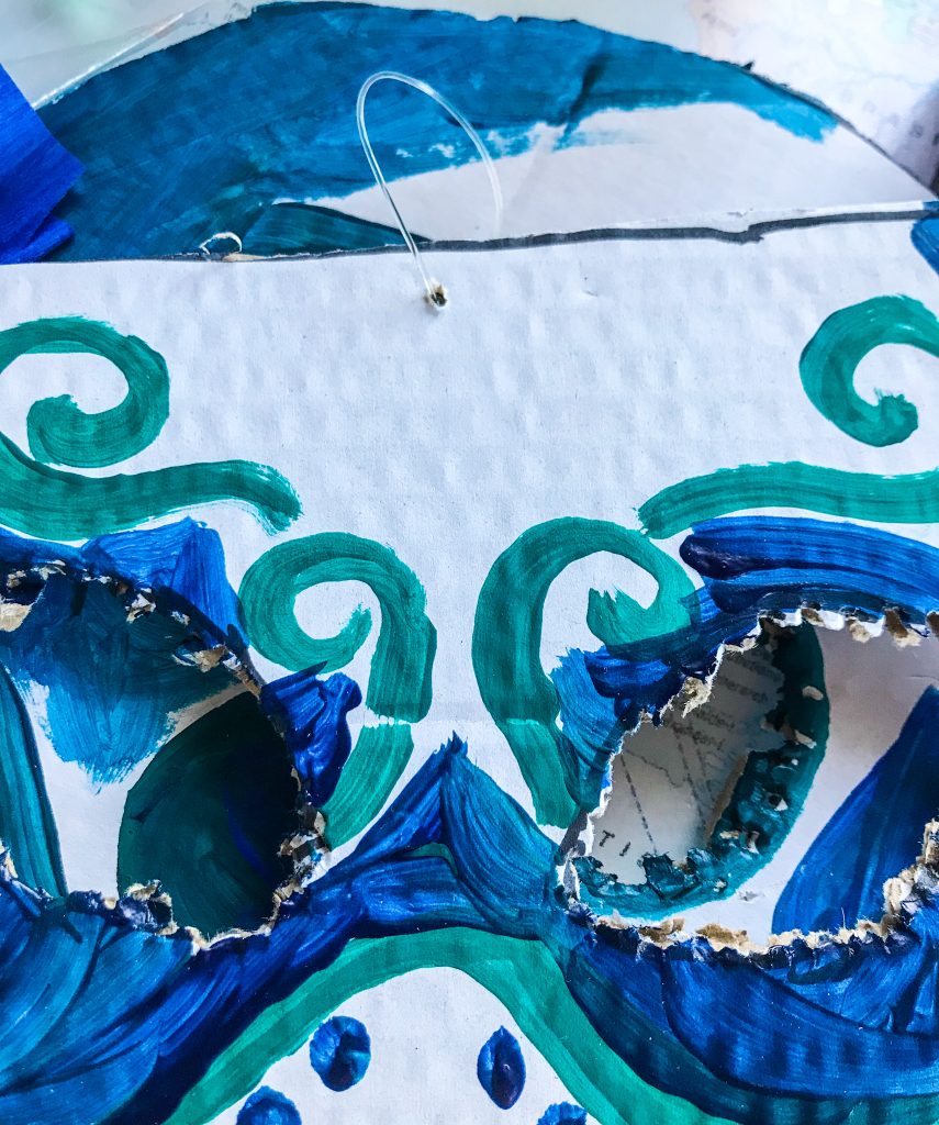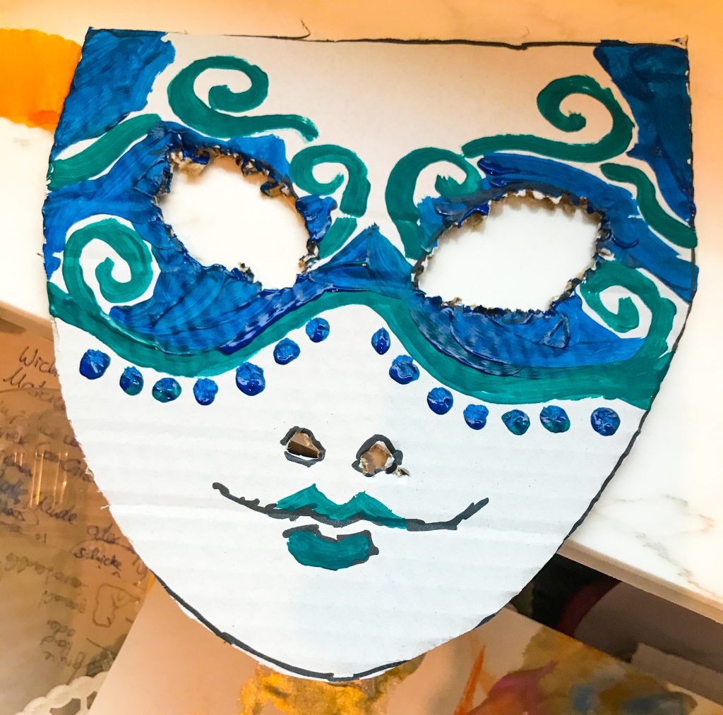 Als ich parallel zu den Kindern die Venezianischen Masken bemalt habe, wollten die beiden unbedingt auch ihre eigene haben. So kam die Idee. Wobei beim zweiten Kind nach dem Ausschneiden und Ausprickeln die Lust abnahm und Mama dann die restliche Maske mit den Restfarben der Venezianischen Maske gestaltet hat.
