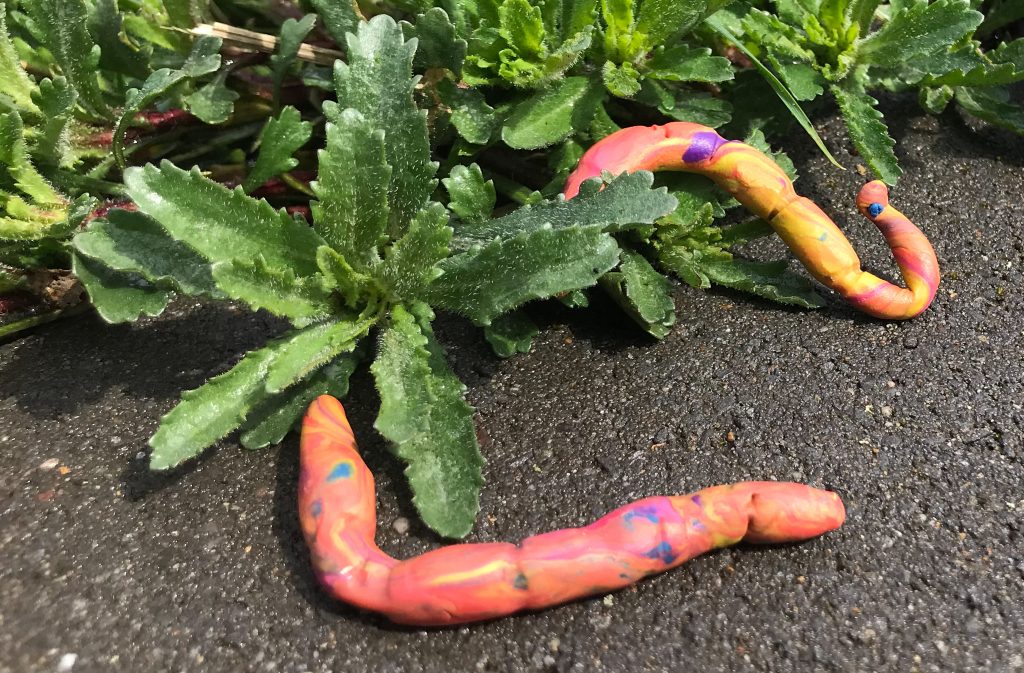 Für die Würmer rollt man einfach zwischen den Händen oder auf der Arbeitsmatte den Ton zu einer Wurst.