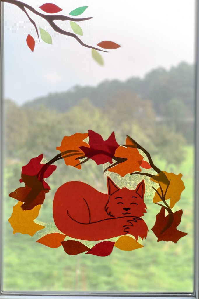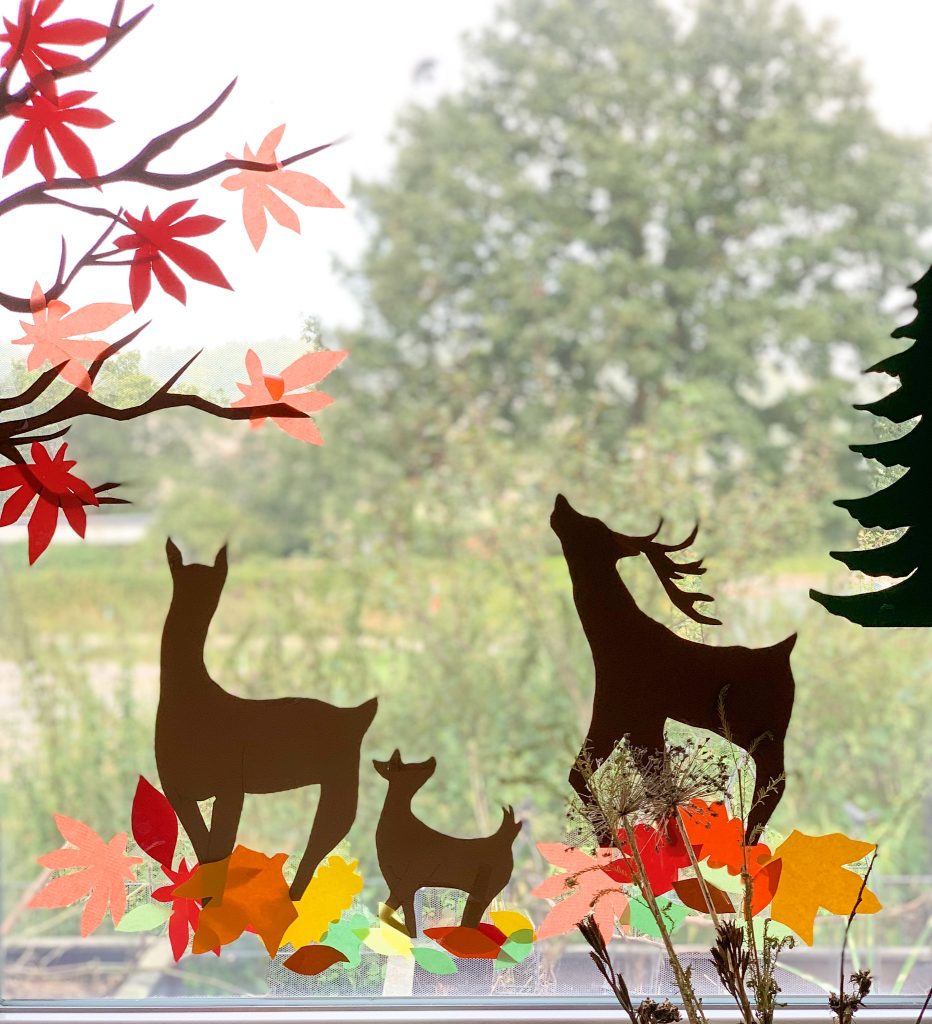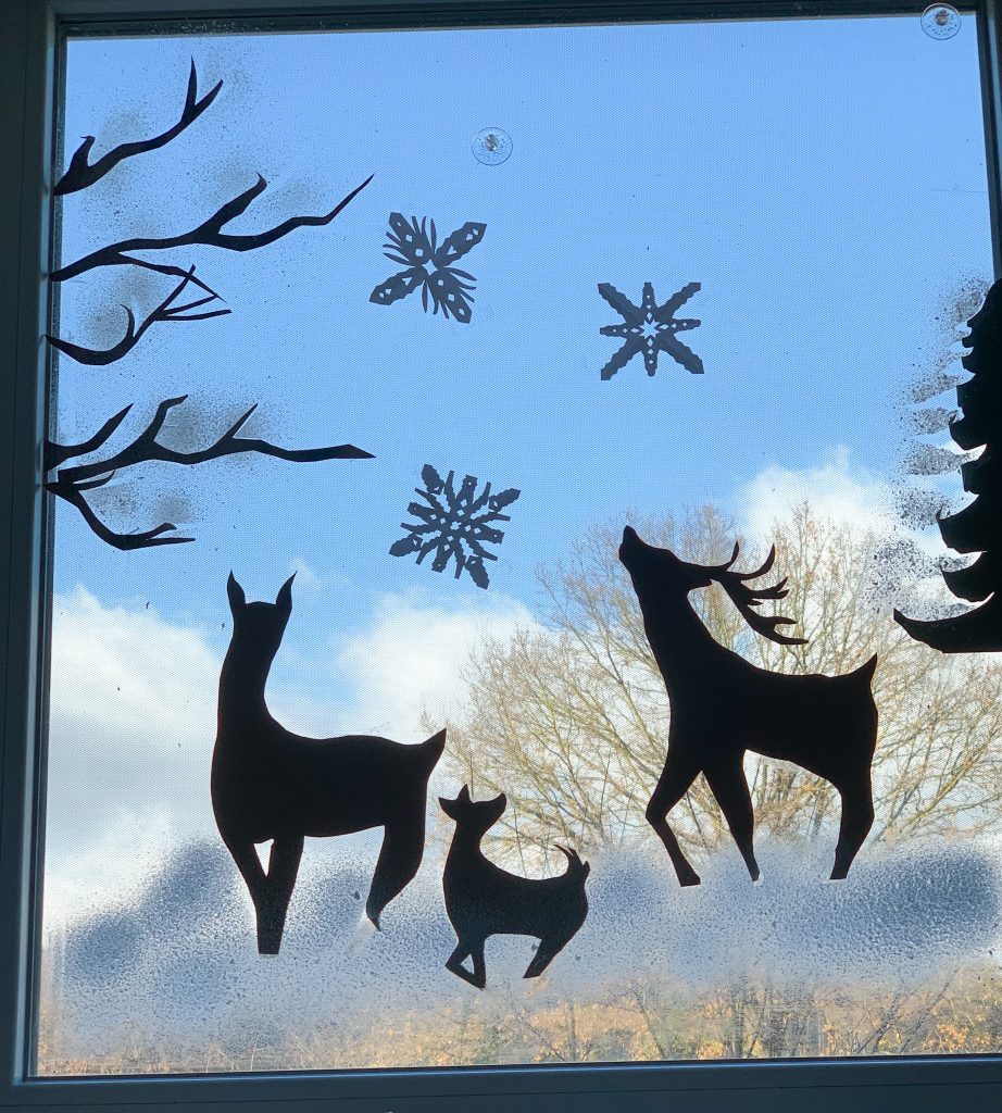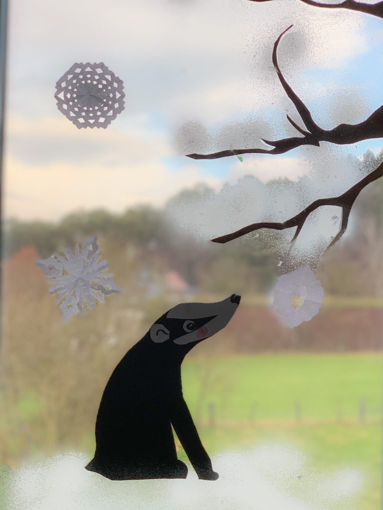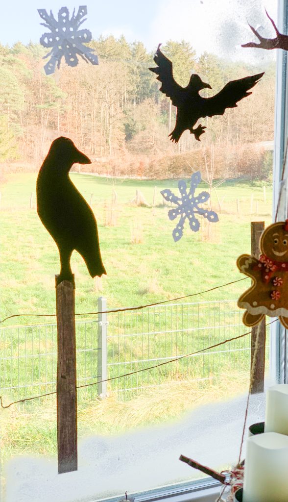 Wenn der Herbst die letzten Blätter fallen lässt, kommt der Winter wunderbar. Für die winterliche Varianten müssen also einfach die bunten Blätter abgehängt und durch Schnee ersetzt werden. Dieses Jahr habe ich das erste Mal Sprühschnee verwendet. Es geht schnell, wenn auch nicht ganz so wie geplant. Eigentlich wollte ich mit Schablonen arbeiten, aber die selbstgemachten Schablonen aus Pappe waren nach einmaligem Sprühen schnell zu feucht und unbrauchbar. Daher gibt es eine weiße Winterdecke ohne Spezialeffekte. Schön und auch in ihrer Herstellung irgendwie meditativ sind die klassischen Schneeflocken aus Papier. Und fertig sind die Fensterbilder mit wenig(er) Aufwand.