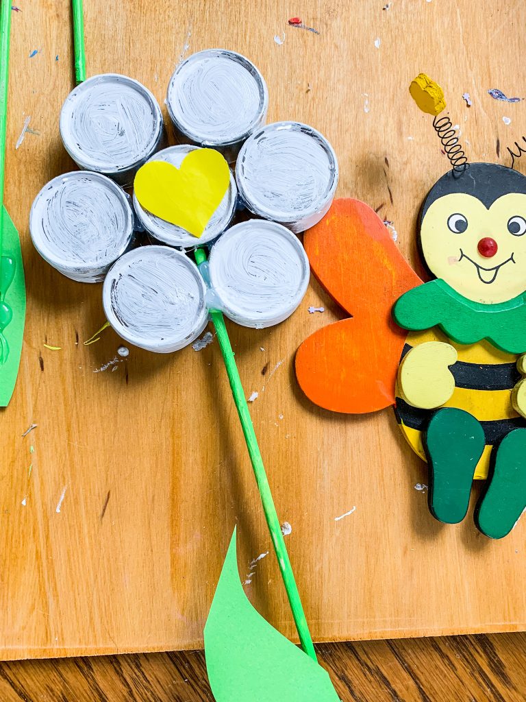 Genauso kann man mit grünem Pfeifenreiniger Blätter an dem restlichen Draht basteln.