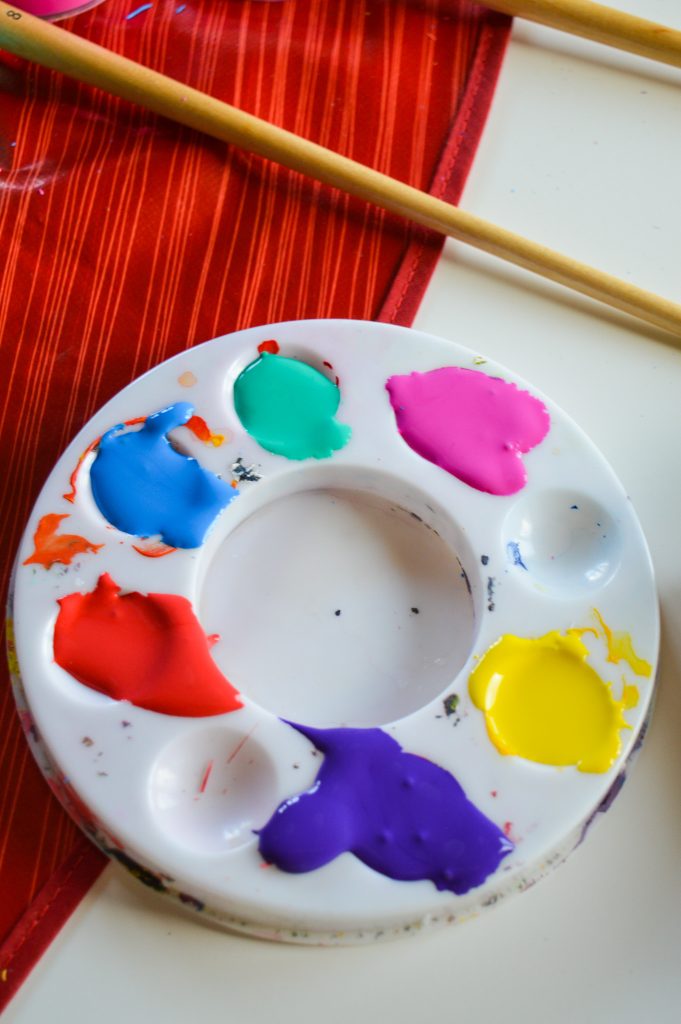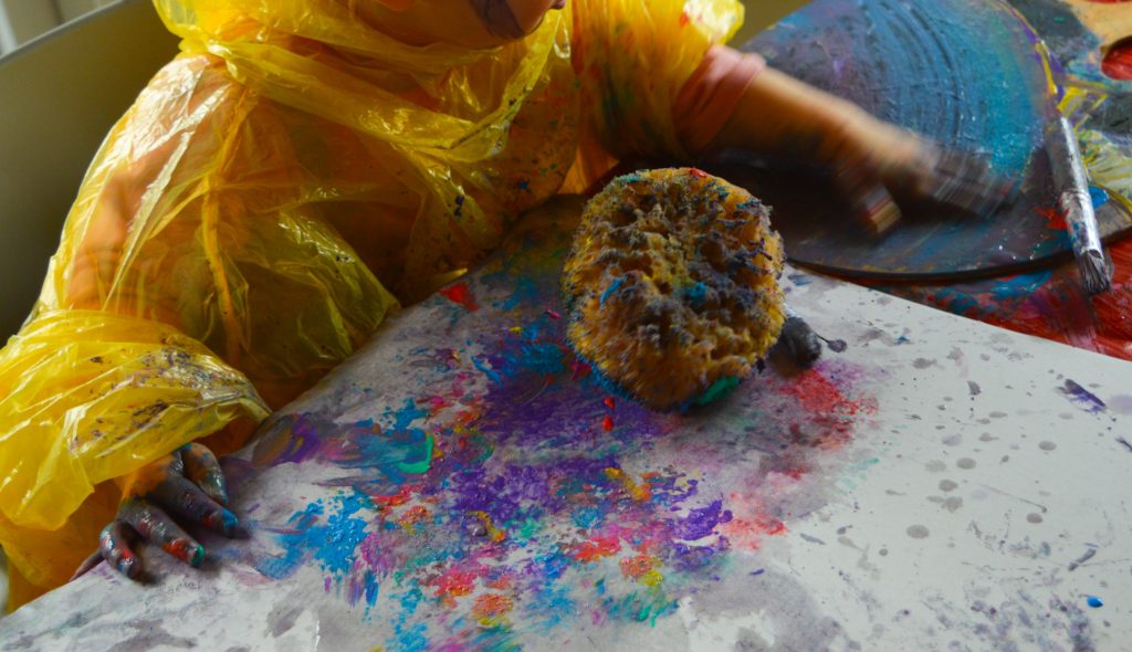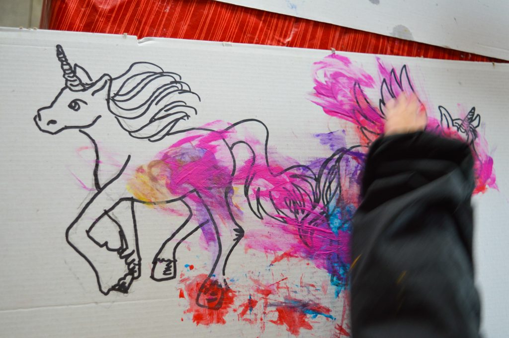 Mithilfe eines Schwamms wie auch mit Pinseln konnten dann die Kinder mit Fingerfarben kreativ werden.