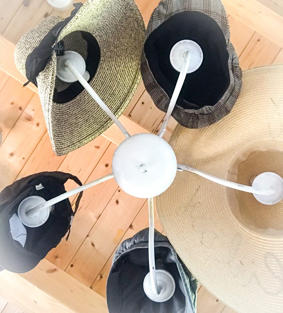 Alles was ihr benötigt ist ein Kronleuchter. Da ja die Hüte auf die Kerzen gehängt werden, muss dieser nicht funktionieren. Schwamm und Reinigungsmittel.