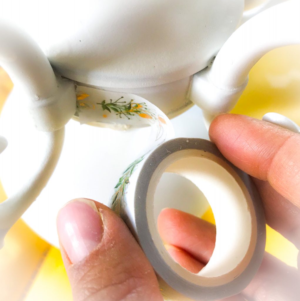 Dann Sprühlack (in meinem Fall waren es der Rest einer kleinen Dose und eine große) nach Wahl und ich habe noch Washitape verwendet, um farbliche Akzente zu setzen. Auch das ist natürlich Geschmackssache.