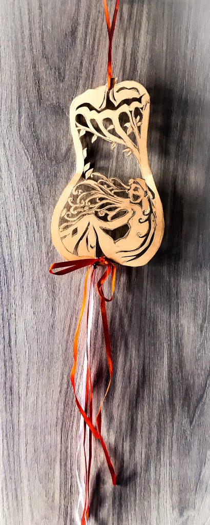 Hier trifft sich meine Bastelleidenschaft und meine Vorliebe für Jugendstil. Ich hatte Lust etwas im Stil Muchas oder anderer Künstler aus der Zeit zu zeichnen. Da gerade Herbst war, kam mir die Idee mit dem Scherenschnitt.