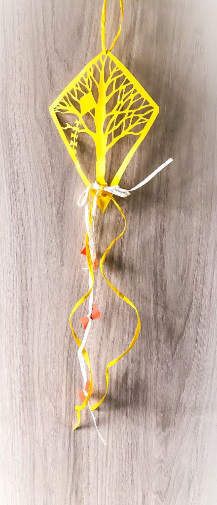 Während des Zeichnens ist es wichtig sich immer zu überlegen, was ausgeschnitten wird und was nicht. Die Flächen, die ich ausschneiden wollte, habe ich immer schraffiert, damit ich einen besseren Überblick hatte. Beim Ausschneiden variierte ich mit Schere und Cutter. Danach kann man den Scherenschnitt mit Schleifenbändern aufhübschen, aufhängen und vor allem bei dem Drachen auch noch weitere Schleifen am Schweif befestigen.